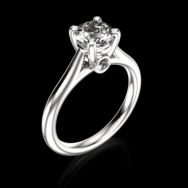 Center Stone: Round Diamond 1ct. Accent Stone: 2 Round Diamonds 0.08 ct.tw. Available in white gold, yellow gold, rose gold, 10K,14K,18K and platinum. Please contact us for pricing and more information.