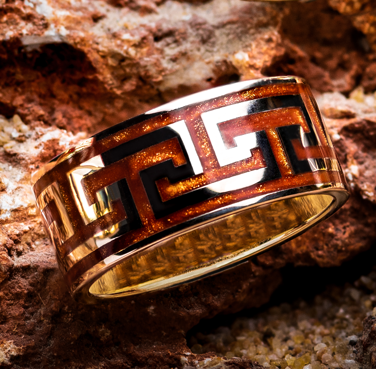 Gold and Ceramic. Width: 7.5mm Vast Choice of Ceramic Colors. Available in white gold, yellow gold, rose gold, 10K,14K,18K and platinum. Please contact us for pricing and more information.