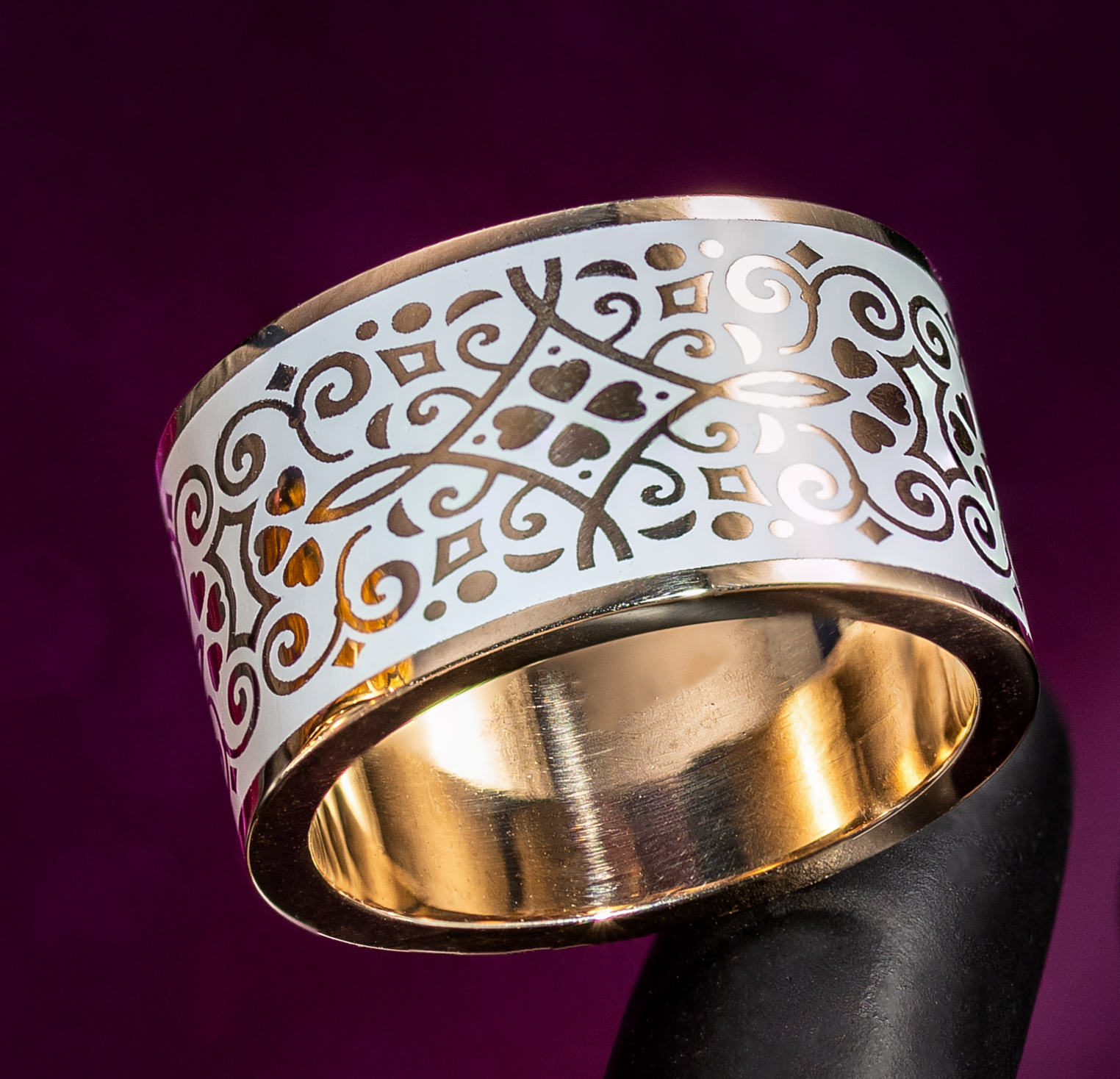 Black Ceramic and Gold. Available in white gold, yellow gold, rose gold, 10K,14K,18K and platinum. Please contact us for pricing and more information.