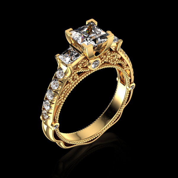 Center : 1 Princess-Cut Diamond 0.75 ct.