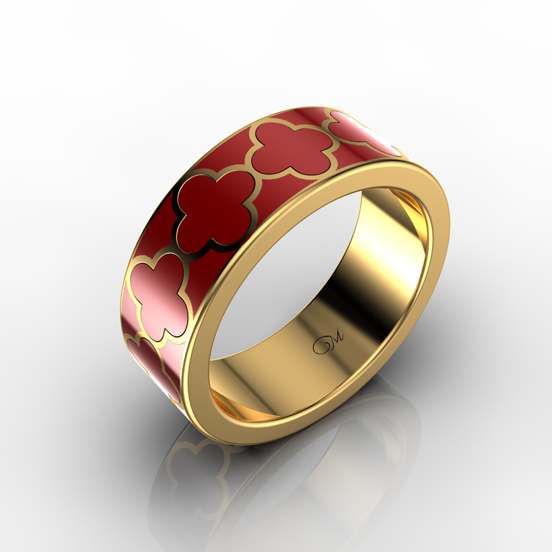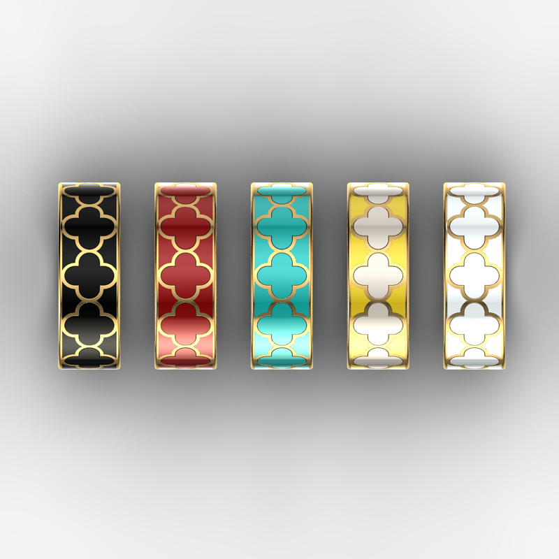 Gold and Ceramic. Vast Choice of Ceramic Colors. Available in white gold, yellow gold, rose gold, 10K,14K,18K and platinum. Please contact us for pricing and more information.