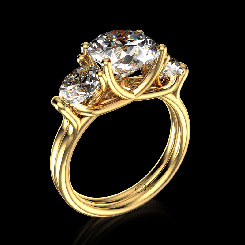 Center Stone: Brilliant-Cut Diamond 9mm Side Stones: Brilliant-Cut Diamonds 4.5mm Available in white gold, yellow gold, rose gold, 10K,14K,18K and platinum. Please contact us for pricing and more information.