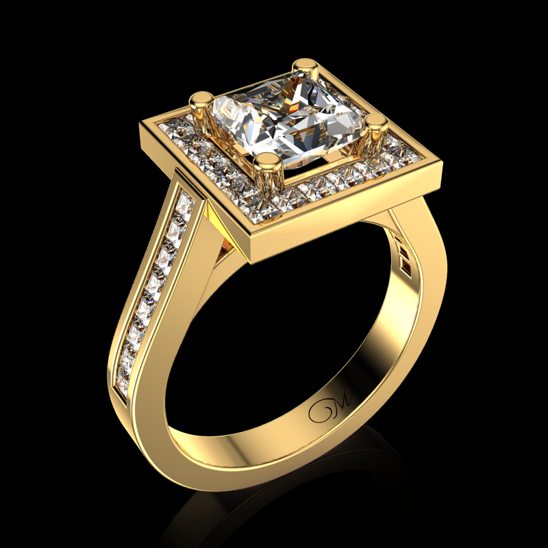 Center Stone: Princess-Cut Diamond 5.9mm Accent Stones: 36 Princess-Cut Diamonds 1.5mm Available in white gold, yellow gold, rose gold, 10K,14K,18K and platinum. Please contact us for pricing and more information.