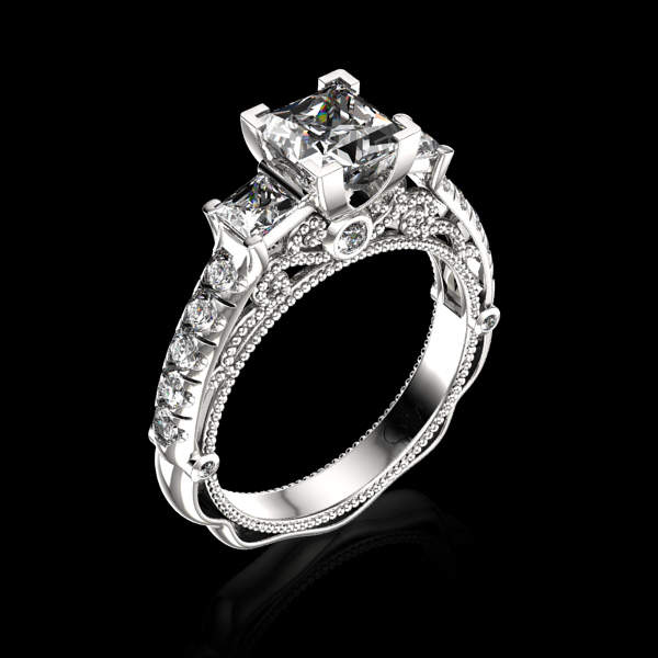 Center : 1 Princess-Cut Diamond 0.75 ct.